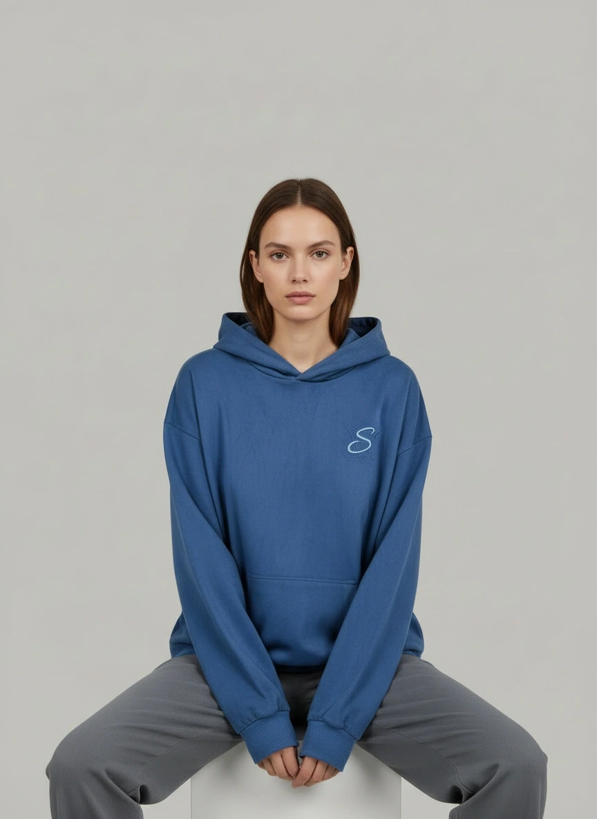 Nakışlı Güderi Kumaş Mavi Sweatshirt Hakkında